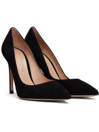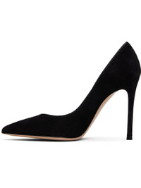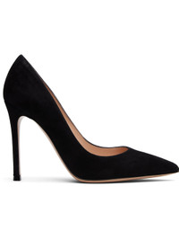 Handcrafted suede heels in black. · Pointed toe · Grained leather lining · Covered stiletto heel with rubber injection · Polished leather sole · Heel: H4" Supplier color: Black suede Leather. Made in Italy 252090F122015