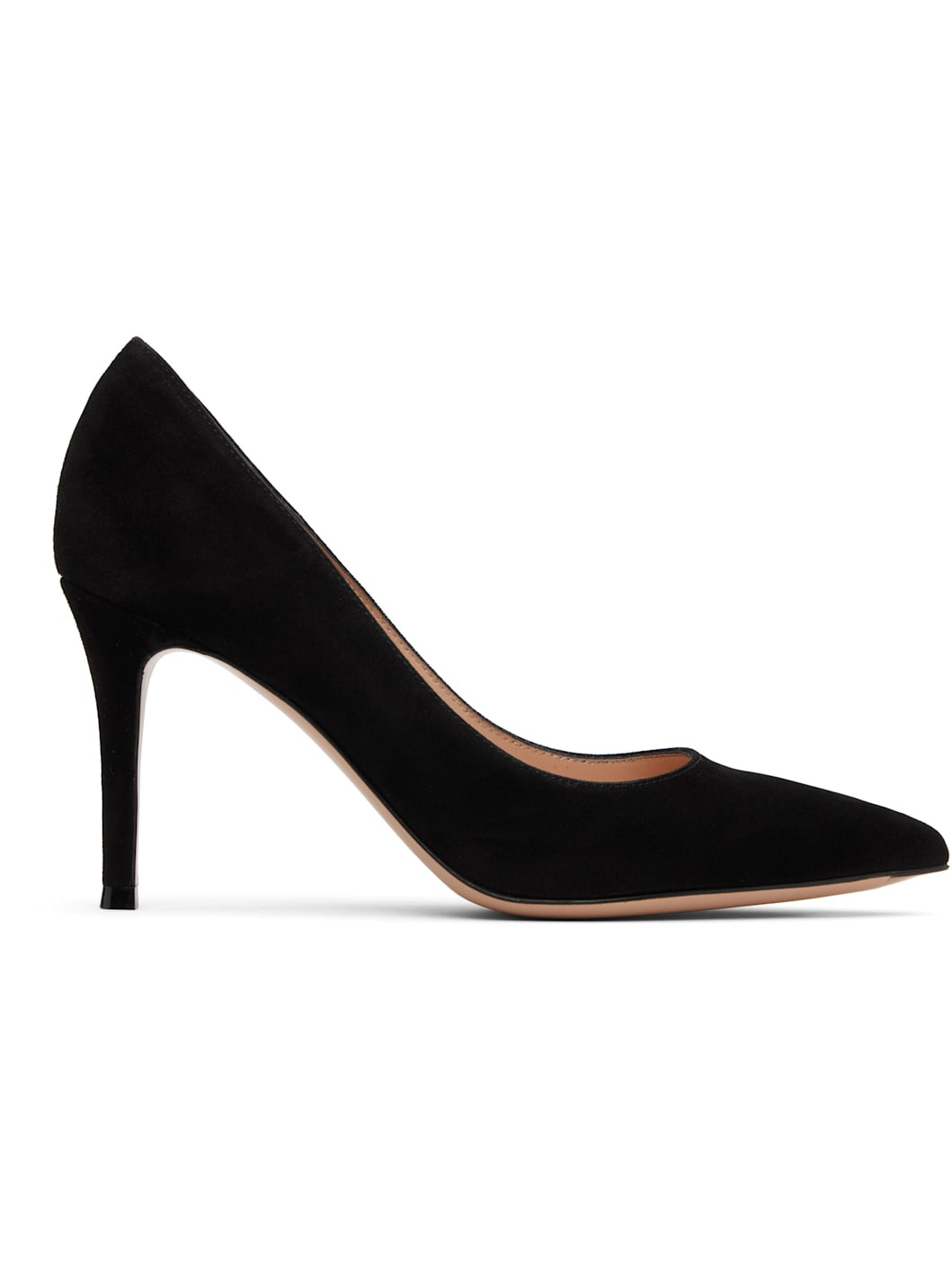 Handcrafted suede heels. · Pointed toe · Covered stiletto heel with rubber injection · Leather sole · Heel: H3.25" Supplier color: Black Upper: leather. Sole: leather, rubber. Made in Italy 252090F122022