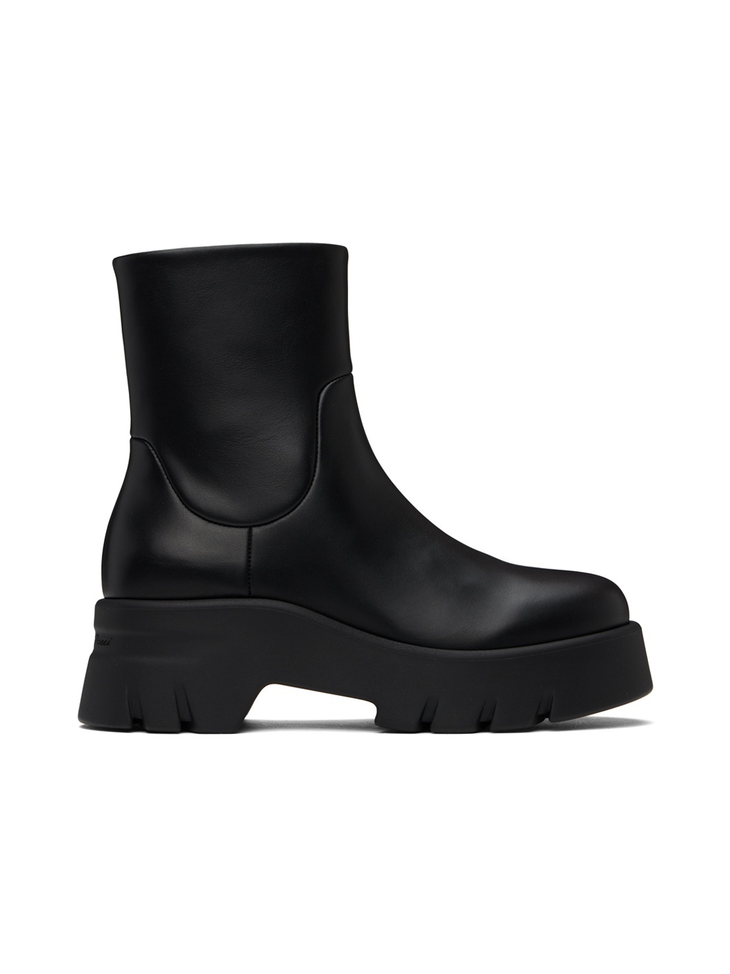 Handcrafted ankle-high buffed calfskin boots in black. · Zip closure at inner side · Logo embossed at rubber midsole · Treaded rubber sole Supplier color: Black Upper: calfskin. Sole: rubber. Made in Italy 242090F113007