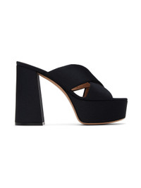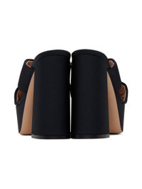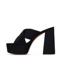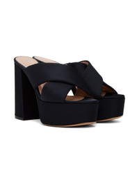Lycra jersey and leather platform sandals in black. · Open almond toe · Padded criss-crossing straps at vamp · Gold-tone logo stamp at footbed · Covered platform and block heel with rubber injection · Leather sole · Heel: H4 in Supplier color: Black Upper: textile, leather. Sole: rubber, leather. Made in Italy 231090F125047