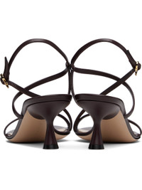 Buffed leather heeled sandals in brown. · Open toe · Crisscrossing pin-buckle slingback strap · Logo stamp at leather footbed · Covered spool heel with rubber injection · Polished leather sole · Heel: H2.5" Supplier color: Vitello glove bourgogne Leather. Made in Italy 252090F125009