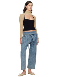 Rib knit nylon- and mohair-blend bolero-style turtleneck. · Open front · Raglan sleeves Supplier color: Beige