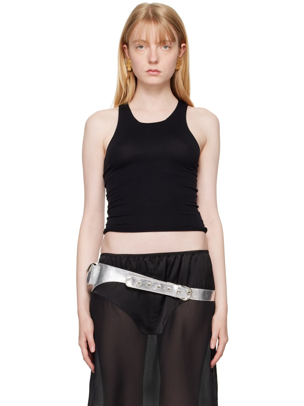 Nylon jersey tank top. · Round neck · Rolled edge at hem · Logo printed at back collar Supplier color: Black 100% polyamide. Made in Spain 241776F111017