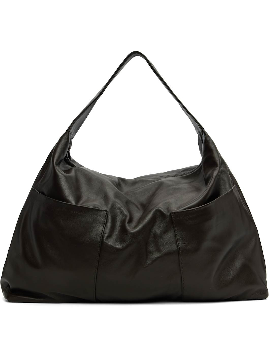 Grained faux-leather shoulder bag. · Fixed shoulder strap · Patch pockets at face · Logo embossed at back face · Zip closure · Patch pocket at interior · Twill lining · H13" x W18.75" x D4.25" Supplier color: Brown Synthetic. Made in Spain 252776F048005
