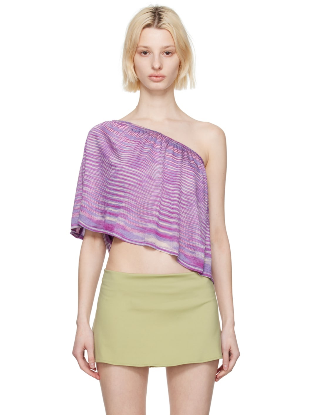 Knit viscose tank top. · Single-shoulder construction · Elasticized asymmetric neck · Cropped hem Supplier color: Pink