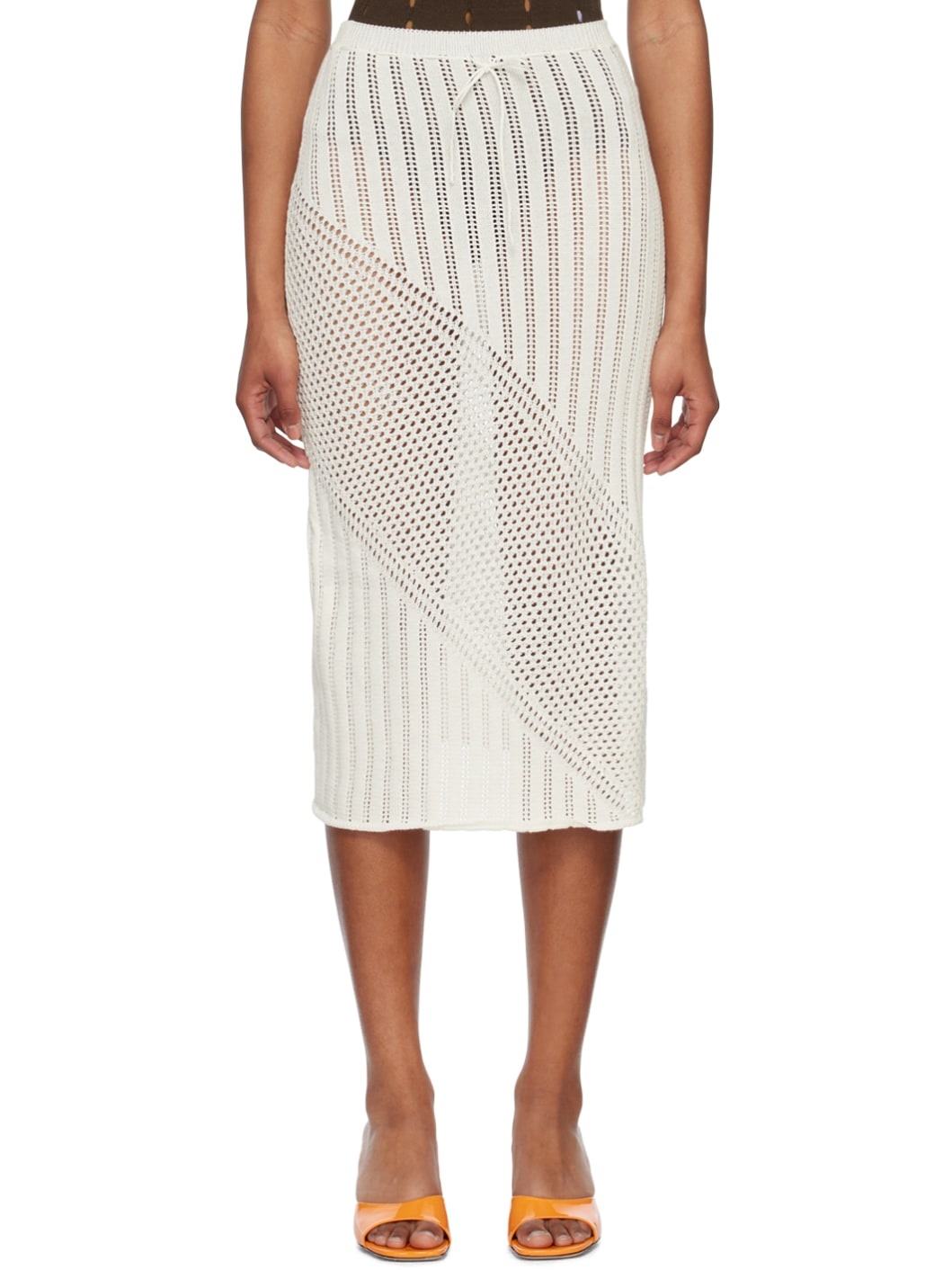 Knit cotton skirt. · Open knit detailing throughout · Drawstring at rib knit waistband Supplier color: White