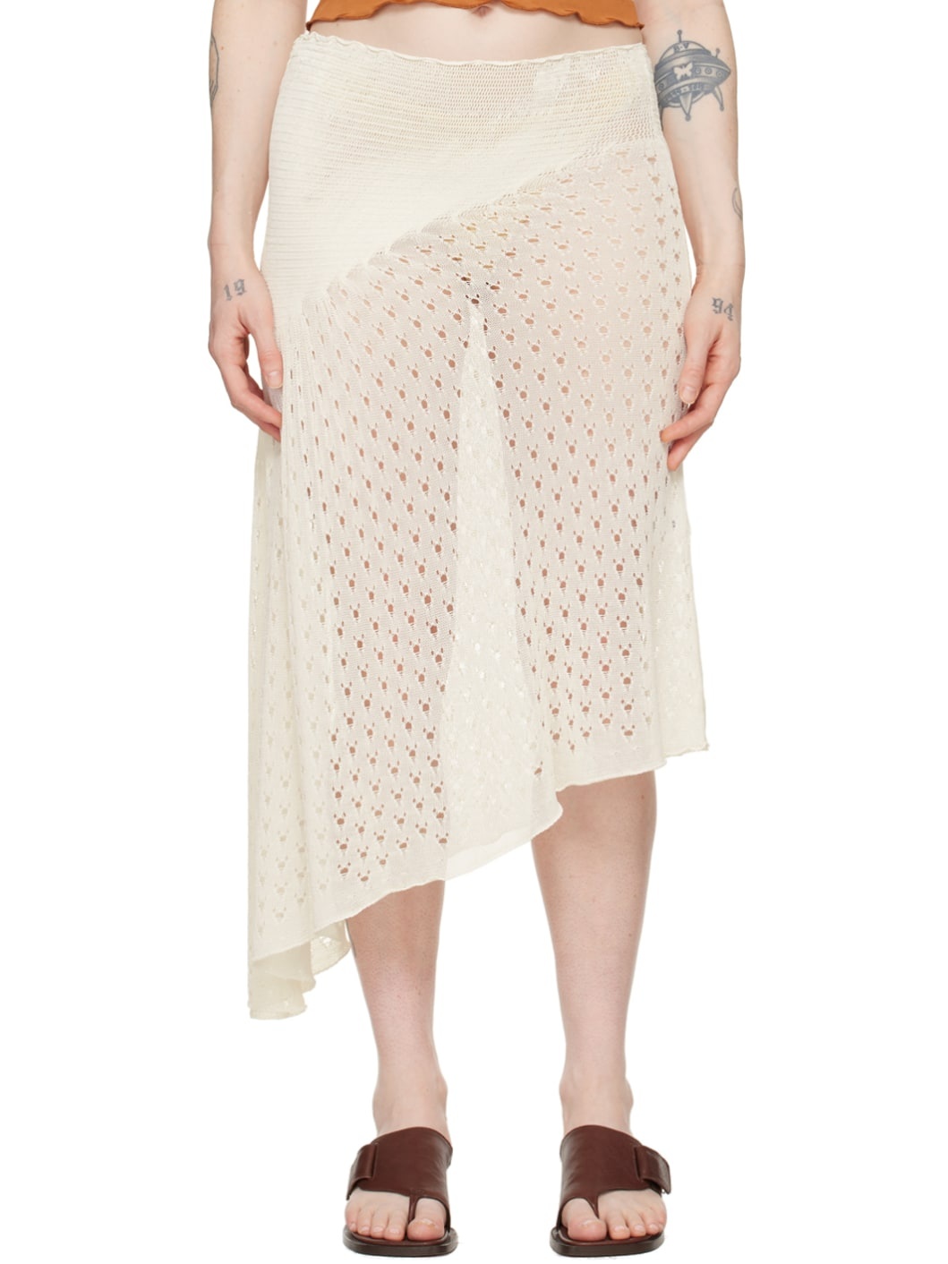 Knit and open knit viscose skirt. · Lettuce edge at waistband · Unlined Supplier color: White