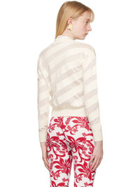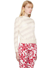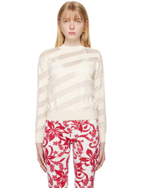 Semi-sheer knit viscose and viscose organza sweater. Stripes throughout. · Paneled construction · Rib knit crewneck, hem, and cuffs Supplier color: White 48% viscose, 32% polyester, 20% recycled polyester. Made in Spain 241776F096003