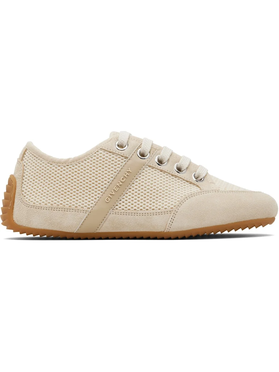 Low-top mesh, calfskin suede, and buffed calfskin sneakers. · Lace-up closure · Logo bonded at outer side · Cotton canvas lining · Treaded rubber sole Supplier color: Natural beige Upper: textile, calfskin. Sole: rubber. Made in Italy 252278F128000