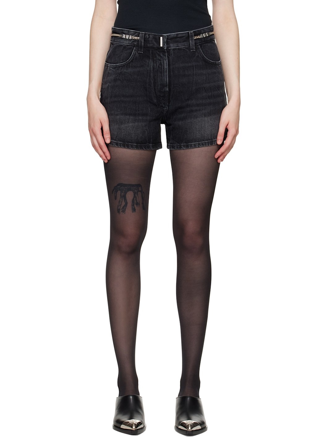 Non-stretch denim shorts. Fading and whiskering throughout. · Belt loops · Integrated curb chain and logo hardware at waistband · Four-pocket styling · Zip-fly · Logo hardware at back pocket · Logo-engraved silver-tone hardware Supplier color: Black Body: 100% cotton. Lining: 65% polyester, 35% cotton. Made in Italy 242278F088001