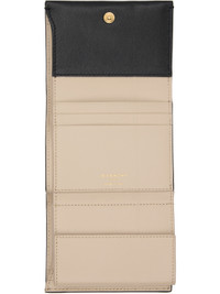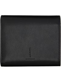 Grained calfskin trifold wallet. · Logo stamp at face · Logo embossed at back face · Press-stud closure · Five card slots at interior · One note slot · Press-stud coin compartment · H3.5" x W4" x D1.75" Supplier color: Black Calfskin. Made in Italy 252278F040000