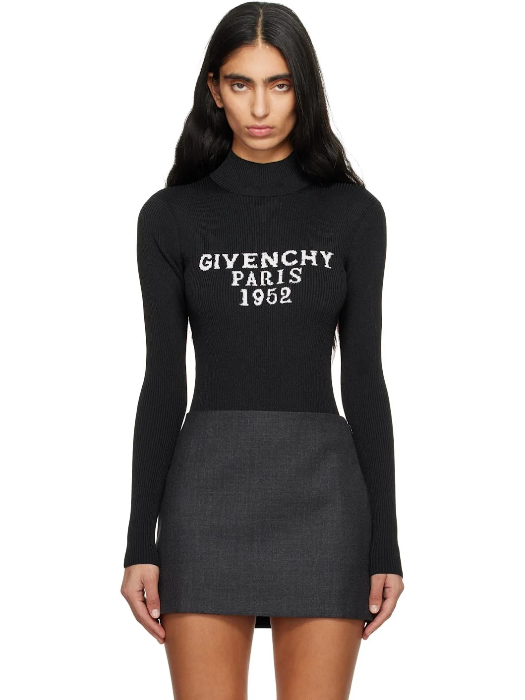 Black Fine Rib 'Givenchy' Signature Bodysuit