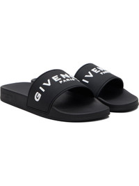 Rubber pool slides. · Open toe · Logo embossed at vamp · Molded rubber footbed · Treaded rubber sole Supplier color: Black Rubber. Made in Italy 252278M234000