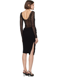 Viscose crepe and sheer stretch nylon mesh dress. Logo pattern flocked throughout. · Boat neck · Gathering at skirt · Vented side seam · Low back Supplier color: Black Body 1: 100% viscose. Body 2: 82% polyamide, 18% elastane. Lining: 82% polyamide, 18% elastane. Made in Italy 242278F054010