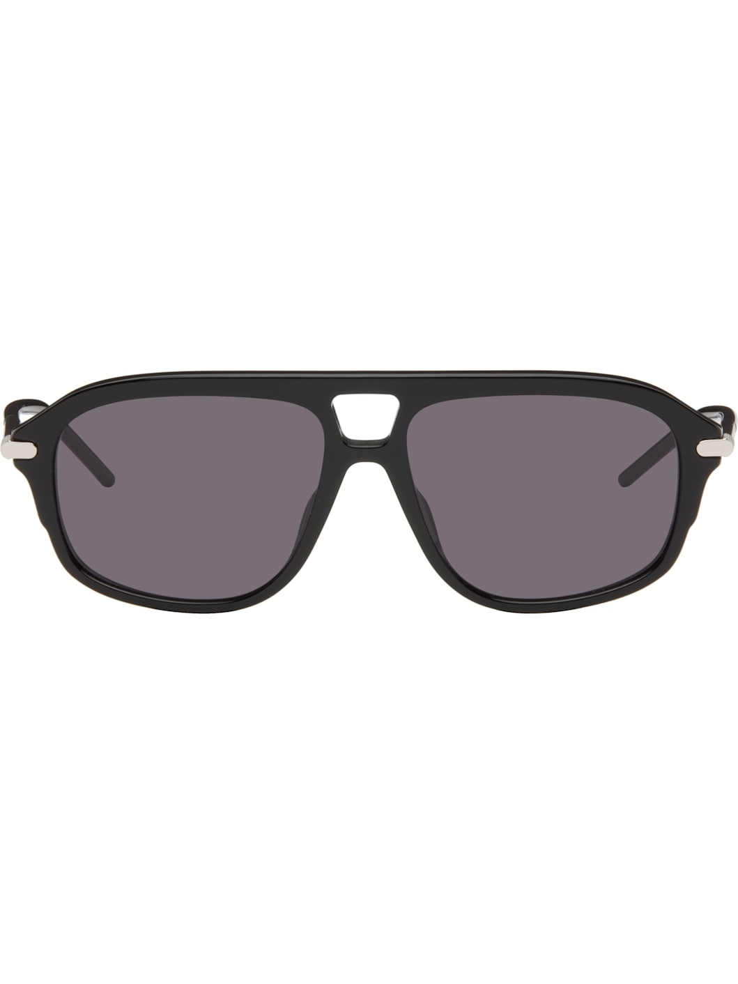 Aviator-style acetate- and metal-frame sunglasses. · Gray lenses · Double bridge · Integrated nose pads · Logo engraved at temples · Acetate temple tips · Includes pouch · Size: 57.15 145 Supplier color: Shiny black/Smoke Acetate, metal. Made in Italy 252278M134017