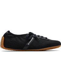 Low-top mesh and grained leather sneakers. · Lace-up closure · Grosgrain trim at collar · Pull-loop at back collar · Logo embossed at outer side · Mesh lining · Treaded rubber sole Supplier color: Black Upper: textile, leather. Sole: rubber. Made in Italy 252278F128003