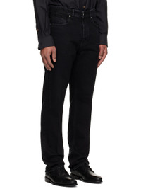 Stretch denim jeans. · Fading throughout · Straight-leg · Belt loops · Five-pocket styling · Zip fly · Creased legs · Suede logo patch at back waistband · Logo embroidered at back pocket · Logo-engraved silver-tone hardware Supplier color: Black 99% cotton, 1% elastane. Made in Italy 252278M186004