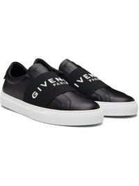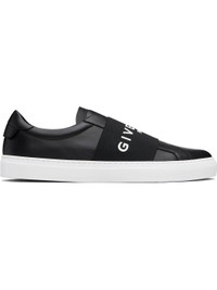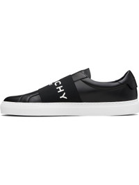 Low-top grained calfskin slip-on sneakers. · Logo-bonded elasticized strap at vamp · Padded tongue and collar · Grained calfskin lining · Logo embossed at heel · Treaded rubber sole Supplier color: Black Upper: calfskin. Sole: rubber. Made in Portugal 252278M237014