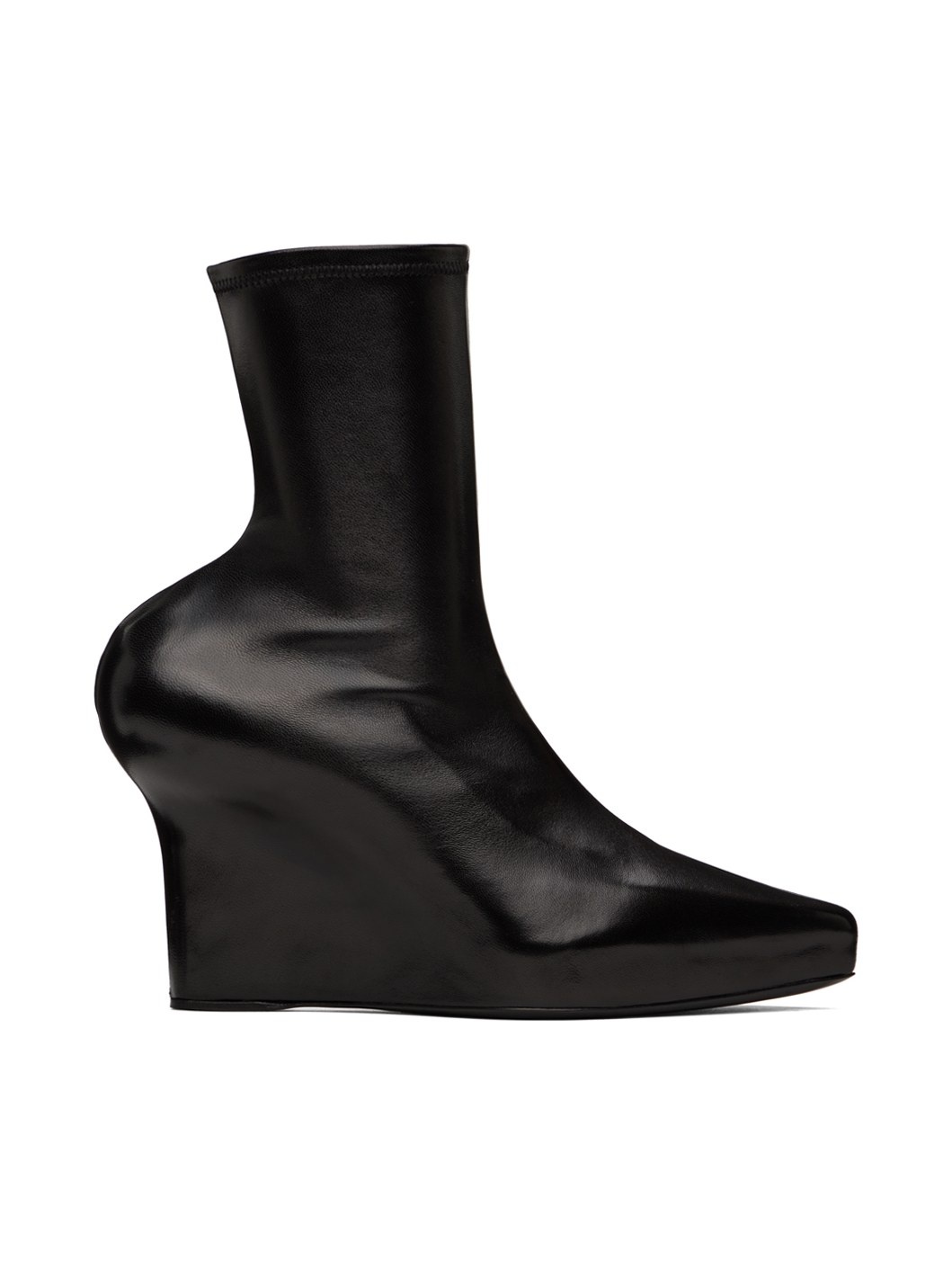Ankle-high grained lambskin boots in black. · Pointed toe · Zip closure at inner side · Bonded jersey and buffed goatskin lining · Covered wedge heel with rubber injection · Buffed calfskin outsole · Heel: H4 in Supplier color: Black Upper: lambskin, goatskin. Sole: calfskin. Made in Italy 222278F113010