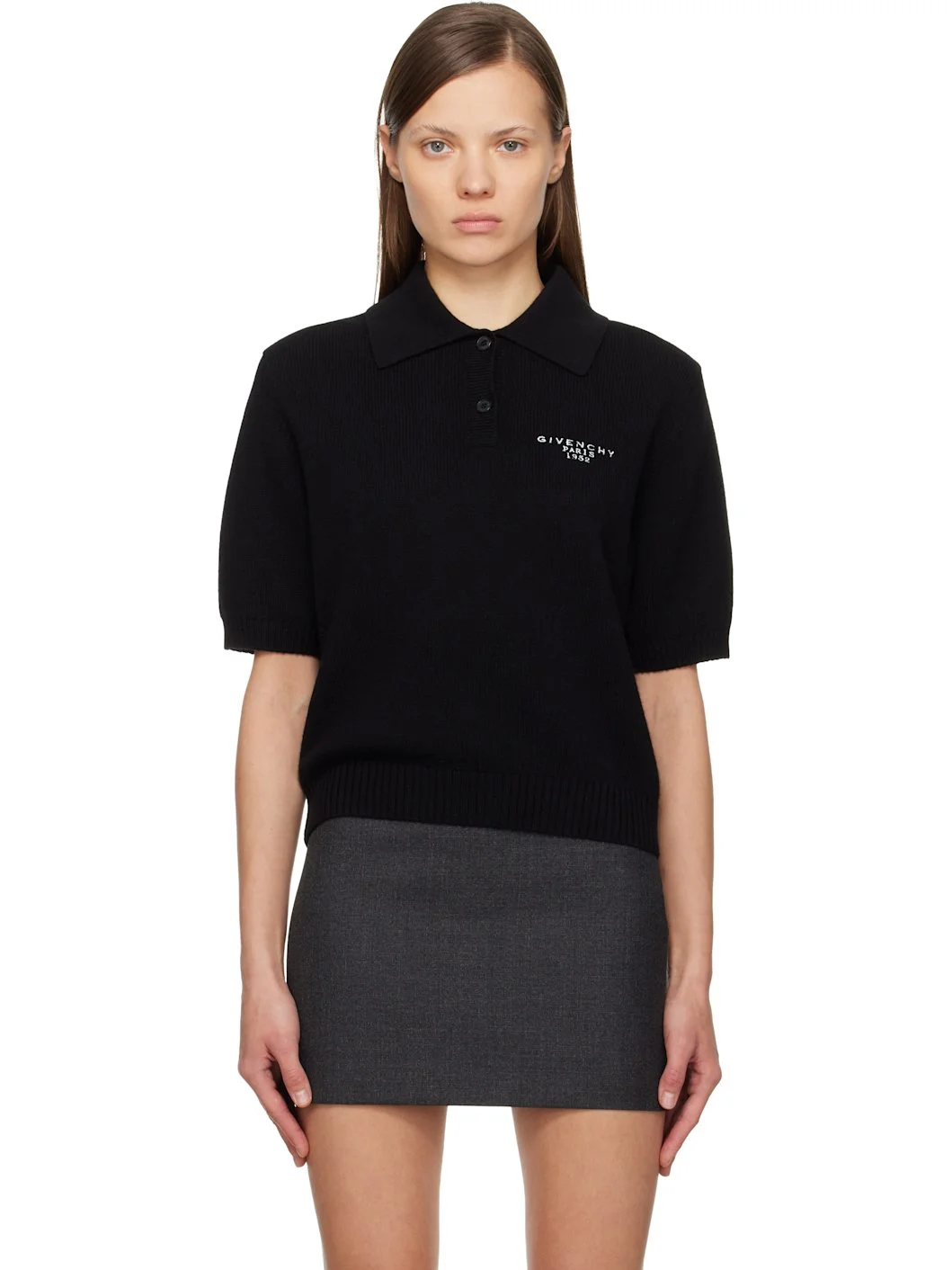 Knit wool- and cashmere-blend polo. · Rib-knit spread collar, hem, and cuffs · Two-button placket · Logo embroidered at chest Supplier color: Black 70% wool, 30% cashmere. Made in Italy 252278F108002