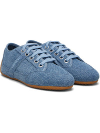 Low-top coated denim sneakers. · Lace-up closure · Grosgrain trim at collar · Bonded logo at outer side · Leather lining · Treaded rubber sole Supplier color: Denim Blue Upper: textile, leather. Sole: rubber. Made in Italy 261278F128002