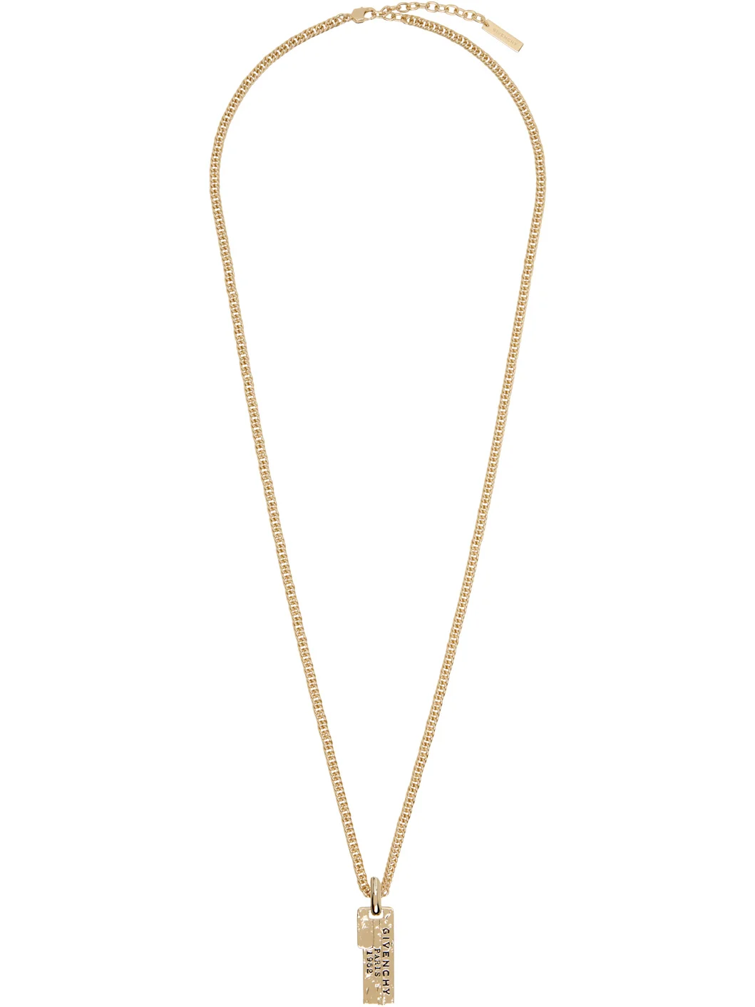 Curb chain necklace in gold-tone brass. · Logo-engraved pendant · Logo plaque at adjustable lobster-clasp fastening · L29.5" Supplier color: Antic golden Brass. Made in Italy 261278F023002