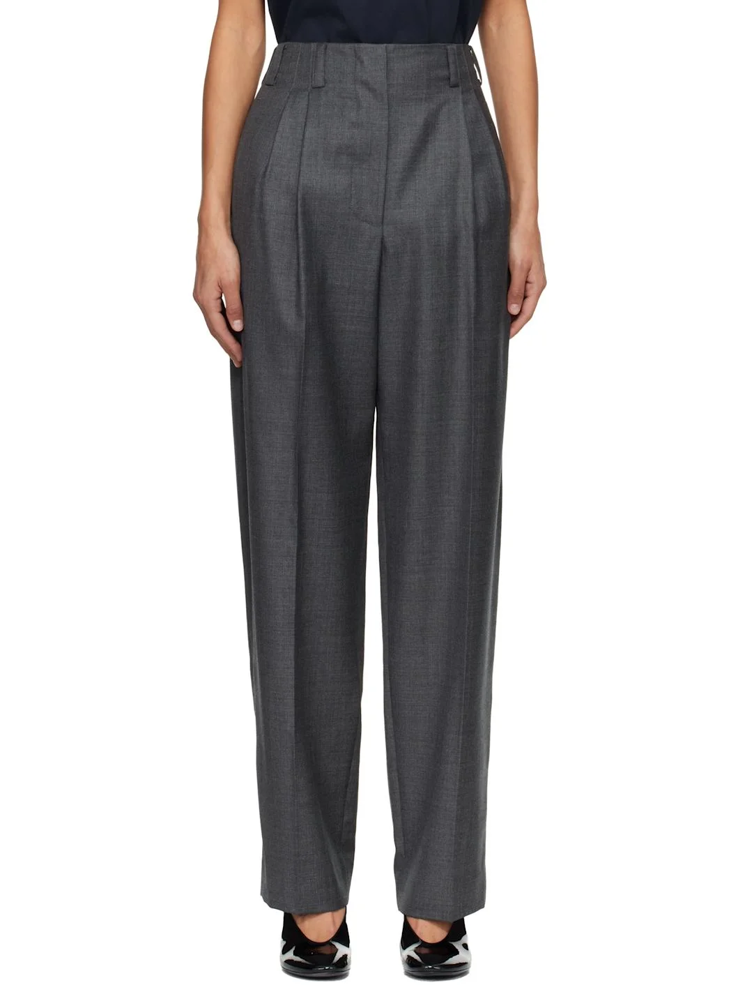 Wool twill trousers. · Low-rise · Belt loops at partially elasticized waistband · Three-pocket styling · Zip-fly · Pleats at front · Creased legs Supplier color: Grey mix 100% wool. Made in Italy 252278F087006