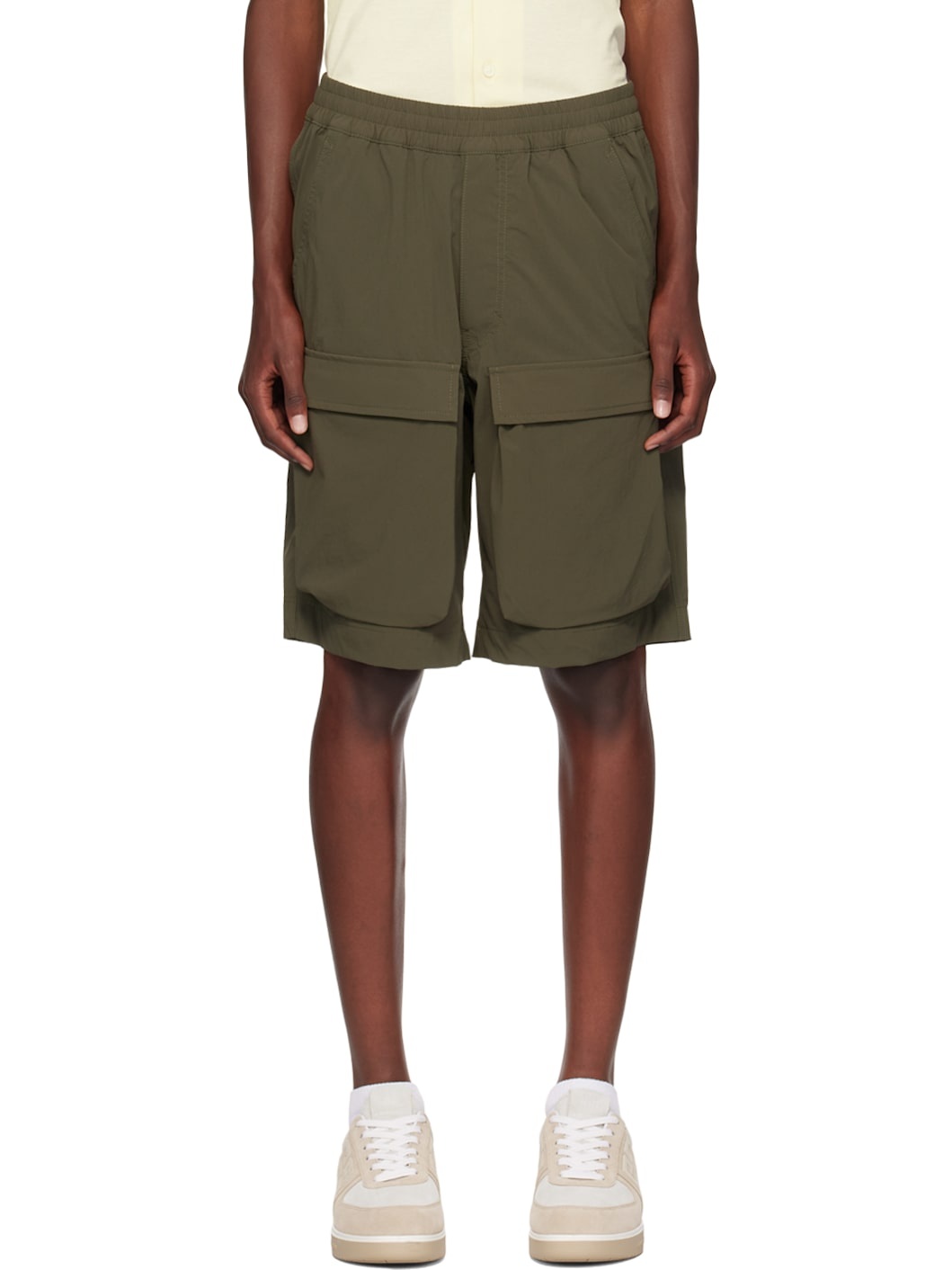 Stretch nylon taffeta shorts. · Concealed drawstring at elasticized waistband · Four-pocket styling · Cargo pockets at front · Logo embroidered at back Supplier color: Khaki 85% polyamide, 15% elastane. Made in Portugal 242278M193000
