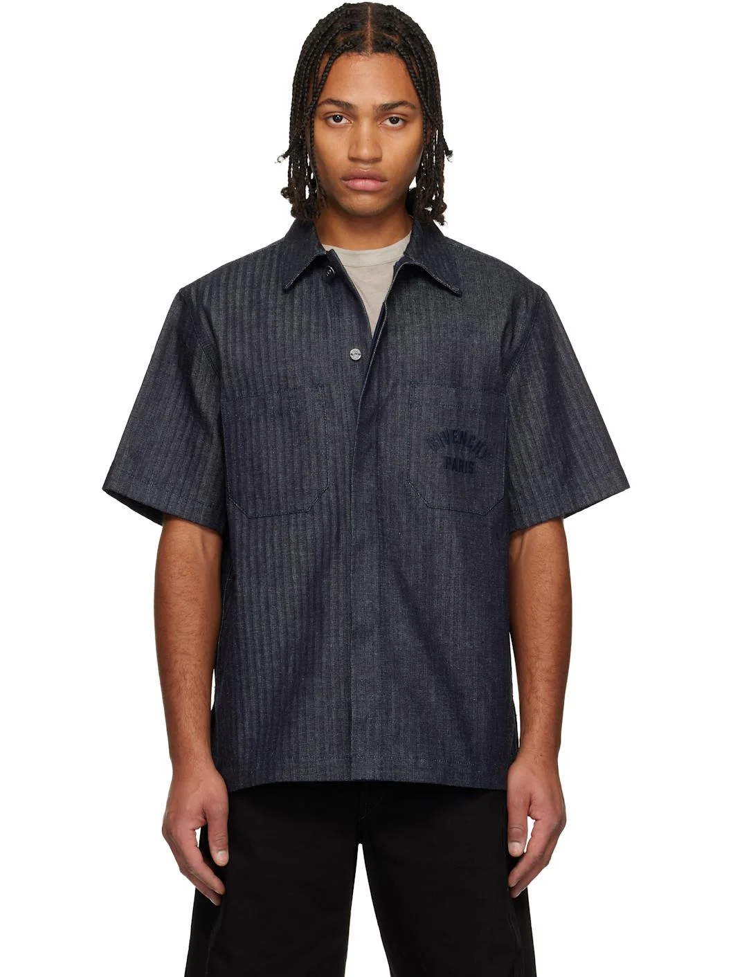 Non-stretch denim shirt. · Herringbone pattern throughout · Spread collar · Button closure · Patch pockets and embroidered logo at chest · Vented side seams Supplier color: Dark blue 100% cotton. Made in Romania 252278M192031