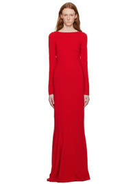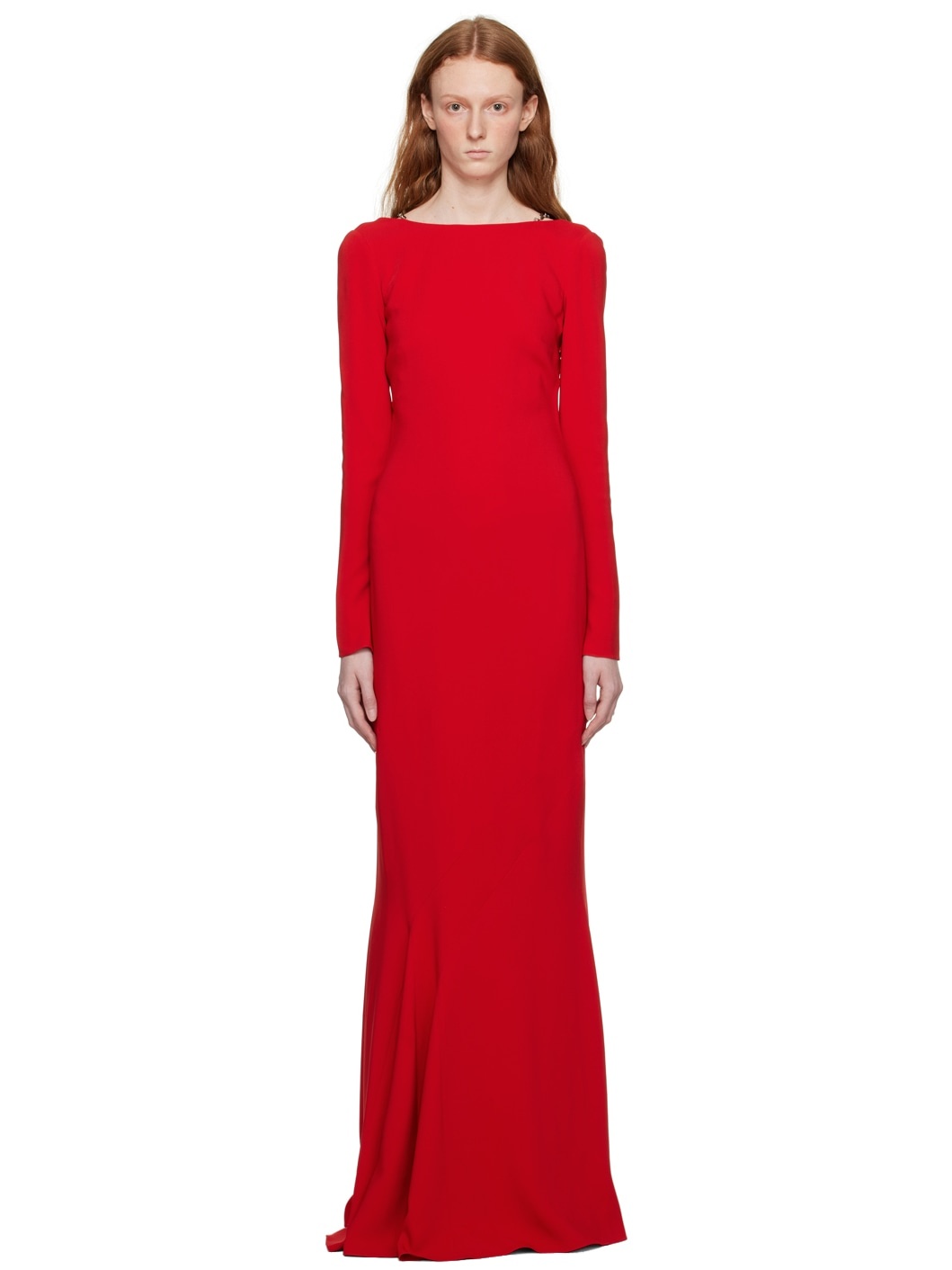 Stretch viscose and acetate-blend crepe dress. · Round neck · Concealed zip closure at side seam · Logo graphic and cable chain detailing at low back · Unlined Supplier color: Vermillion 64% viscose, 33% acetate, 3% elastane. Made in France 231278F055001