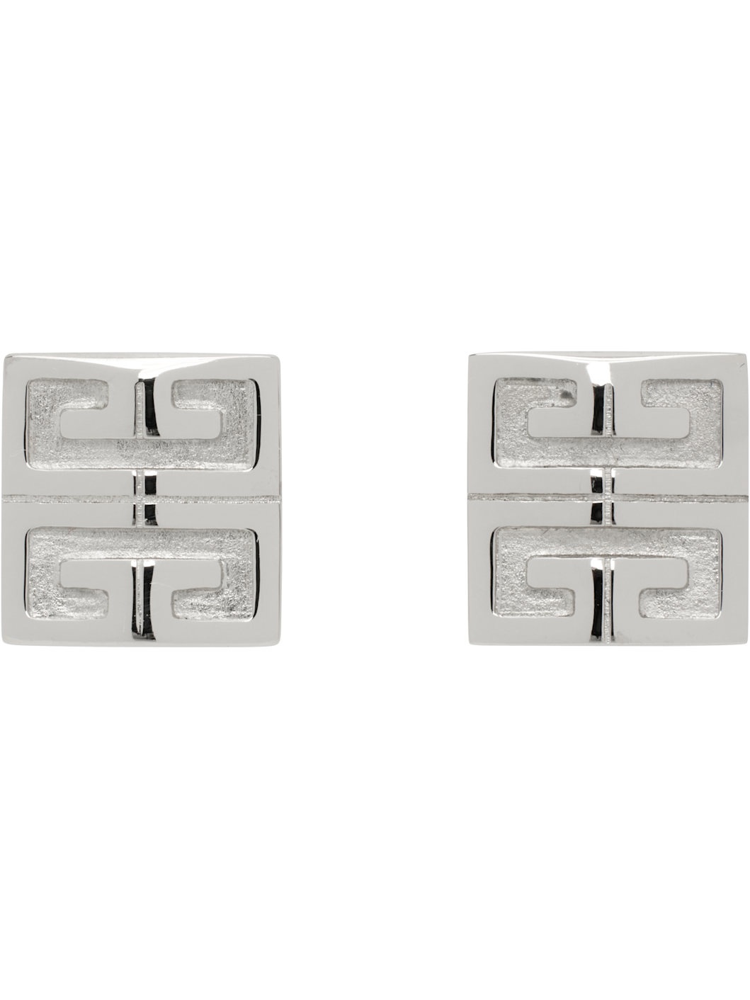 Pair of stud earrings in silver-tone brass. · Logo graphic engraved at face · Post-stud fastening · H0.5" x W0.5" Supplier color: Silver Brass. Made in Italy 251278F022009