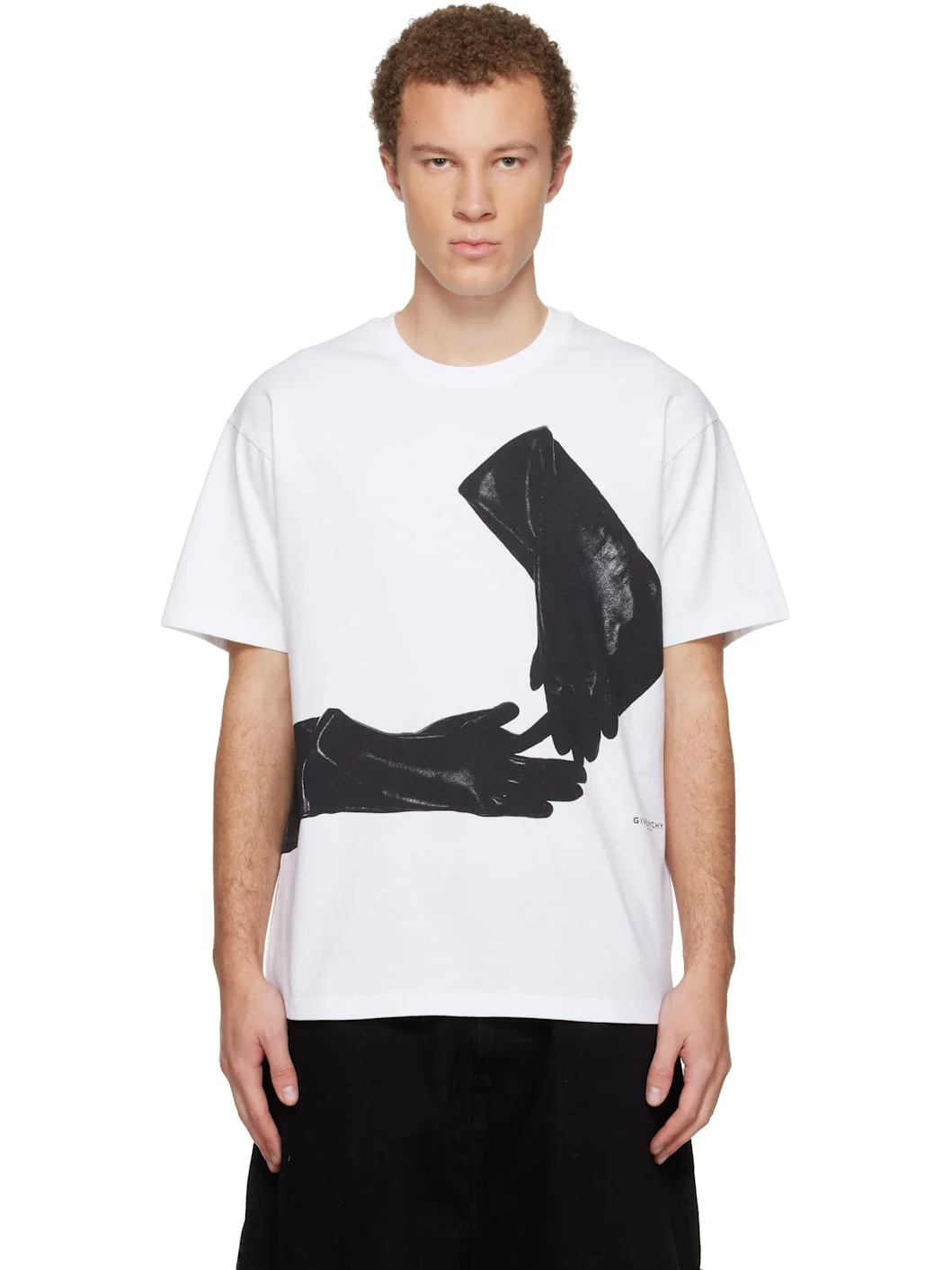 Cotton jersey T-shirt. · Rib-knit crewneck · Graphic printed at front and back · Logo printed at front Supplier color: White 100% cotton. Made in Portugal 261278M213001