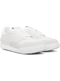 Low-top buffed calfskin and calfskin suede sneakers. · Perforations at toe · Lace-up closure · Logo patch at padded tongue · Padded collar · Logo embossed at heel tab · Buffed lambskin lining · Treaded rubber sole Supplier color: White Upper: calfskin. Sole: rubber. Made in Italy 261278M237001