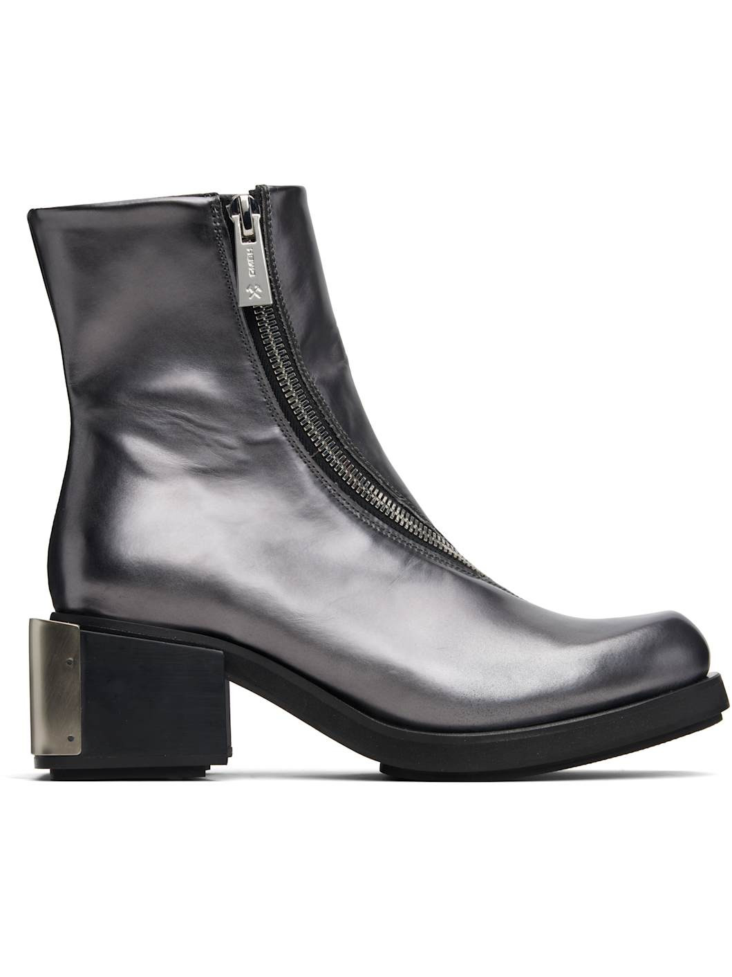 Ankle-high buffed leather boots. · Offset zip closure at vamp · Grained leather lining · Logo hardware at stacked faux-leather heel · Heel with rubber injection · Faux-leather sole · Heel: H2.5" Supplier color: Grey Upper: leather. Sole: synthetic, rubber. Made in Portugal 252979M228001