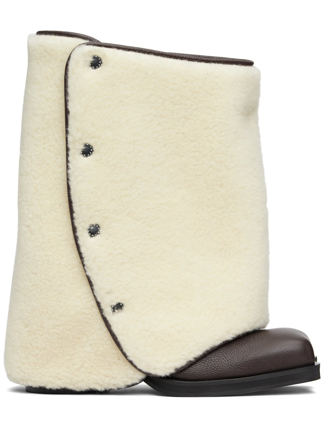 Mid-calf grained leather boots. · Detachable wool fleece overlay · Square toe · Elasticized gusset at sides · Logo printed at outer side · Buffed leather lining · Stacked leather heel with rubber injection · Leather sole · Heel: H2.75" Supplier color: Brown Upper: leather, textile. Sole: leather, rubber. Made in Portugal 252979M228004