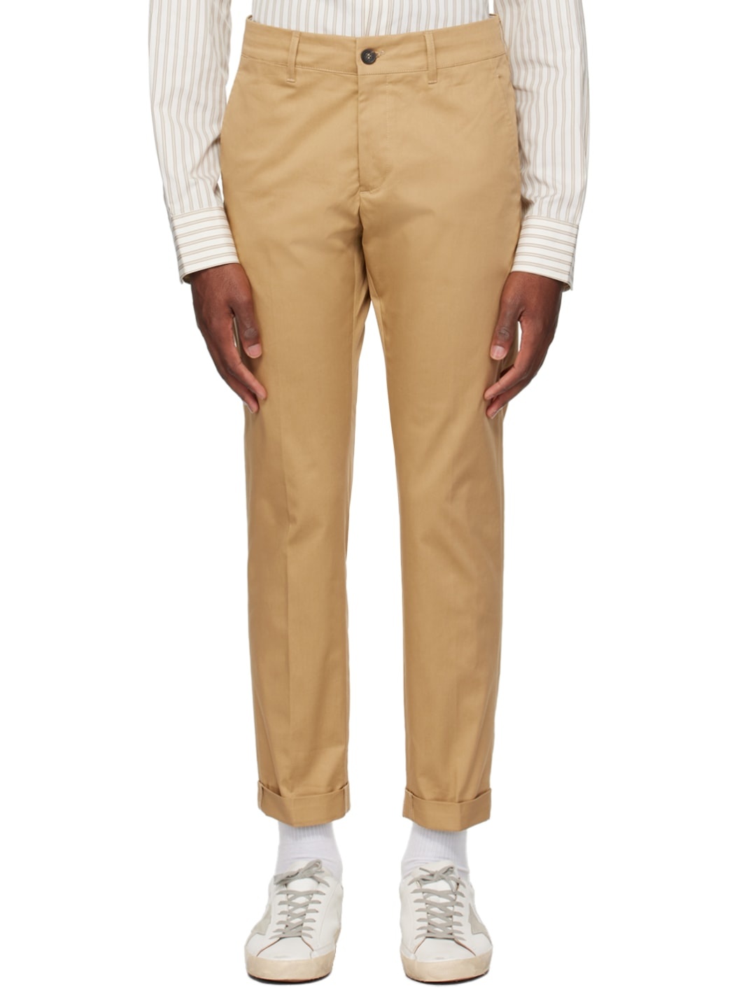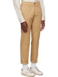 Straight-leg stretch cotton twill trousers. · Belt loops · Four-pocket styling · Zip-fly · Rolled cuffs · Logo patch and logo hardware at back Part of the Golden collection. Supplier color: Beige Body: 97% cotton, 3% elastane. Lining: 100% cotton. Made in Italy 232264M191009