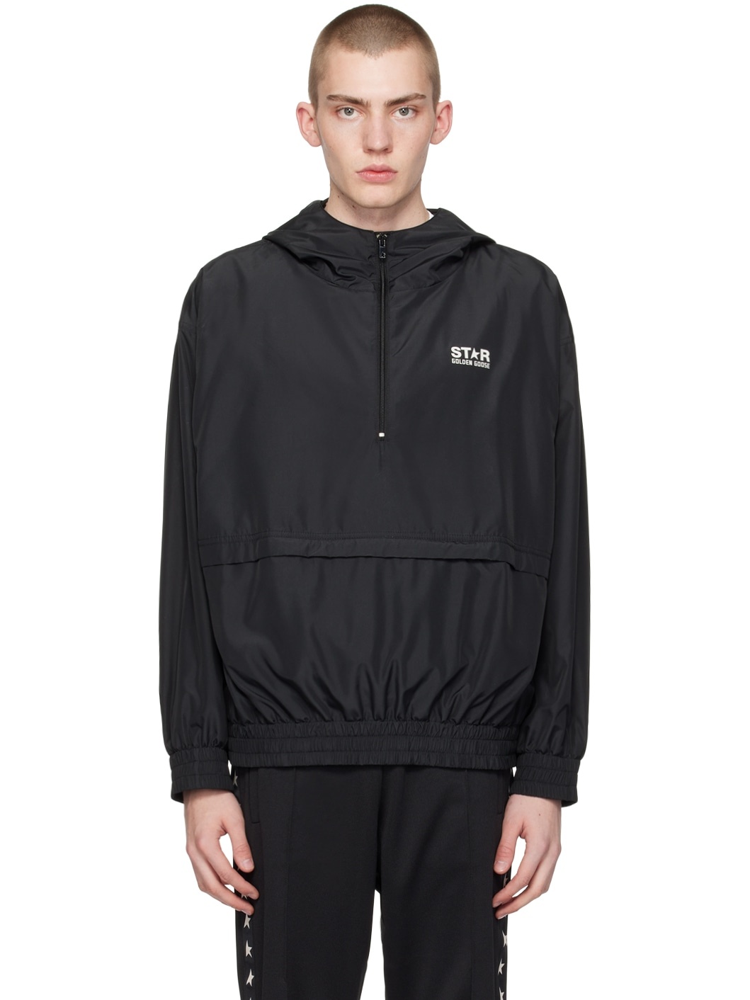 Polyester taffeta jacket. · Half-zip closure · Logo printed at chest · Concealed zip pocket at front · Elasticized hem and cuffs Part of the Star Collection. Supplier color: Black 100% polyester. Made in Italy 241264M180001