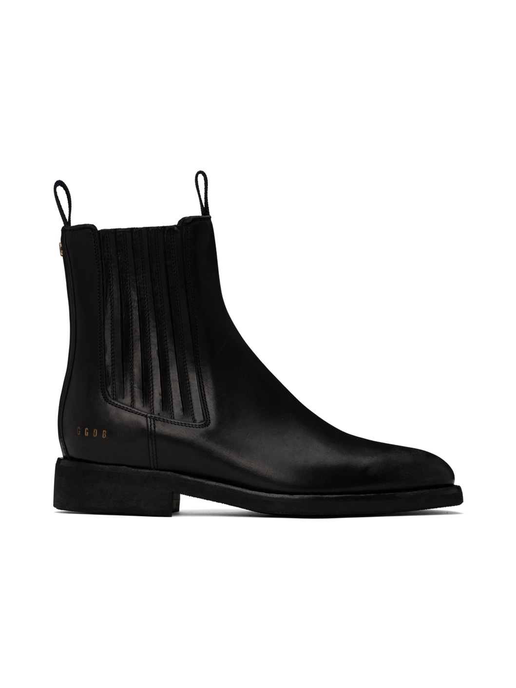 Handcrafted ankle-high buffed leather Chelsea boots in black. · Concealed elasticized gusset at sides · Webbing pull loops at collar · Silver-tone logo hardware at heel · Grained leather lining · Textured rubber sole Supplier color: Black Upper: leather. Sole: rubber. Made in Italy 241264M223001