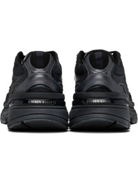 Handcrafted low-top paneled mesh, buffed leather, and sheepskin suede sneakers in black. · Smudging throughout · Perforated detailing at toe · Lace-up closure · Logo patch at padded tongue · Padded collar · Signature star applique at outer side · Pull-loop at heel tab · Logo printed at heel · Treaded rubber sole Supplier color: Black Upper: textile, leather, sheepskin. Sole: rubber. Made in Italy 251264M237050