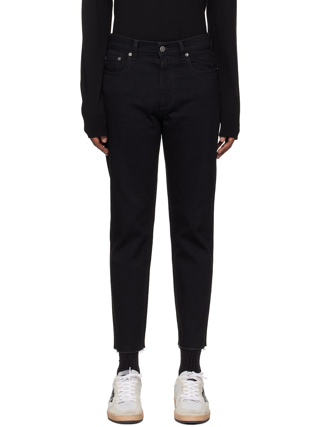 Slim-fit stretch denim jeans. · Belt loops · Five-pocket styling · Zip-fly · Raw edge at cuffs · Logo hardware at back waistband Supplier color: Black Body: 98% cotton, 2% spandex. Lining: 65% polyester, 35% cotton. Made in Italy 242264M186004