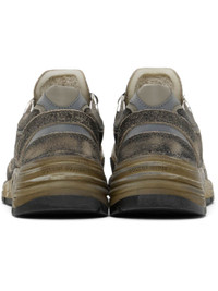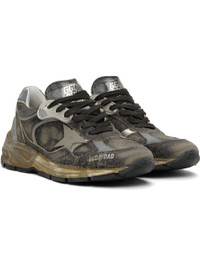 Handcrafted low-top paneled mesh, suede, and buffed leather sneakers in gray. · Smudging, fading, and reflective trim throughout · Lace-up closure · Rubberized logo patch at padded tongue · Padded collar · Signature star applique at outer side · Logo stamp at outer side · Logo embossed at heel · Terrycloth, suede, and buffed leather lining · Treaded rubber sole Supplier color: Black/Silver/Khaki Upper: leather, textile. Sole: rubber. Made in Italy 251264M237027