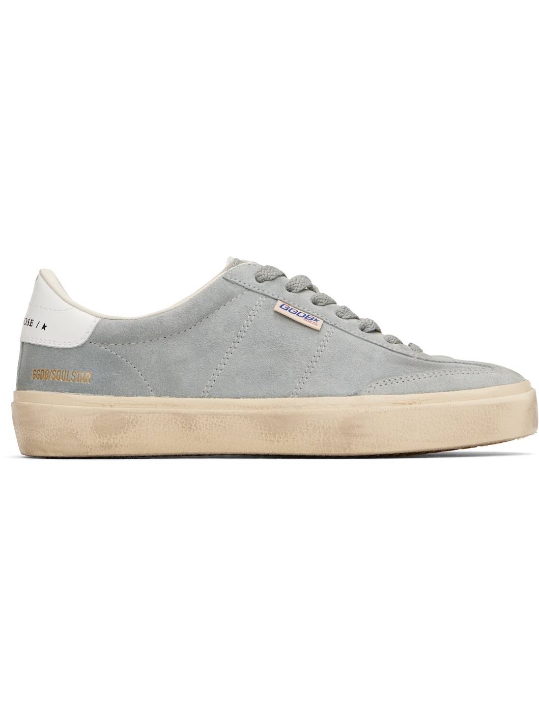 Soul-Star distressed leather-trimmed suede sneakers Gray