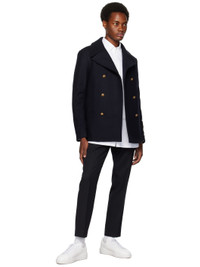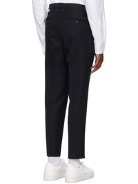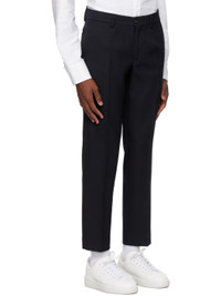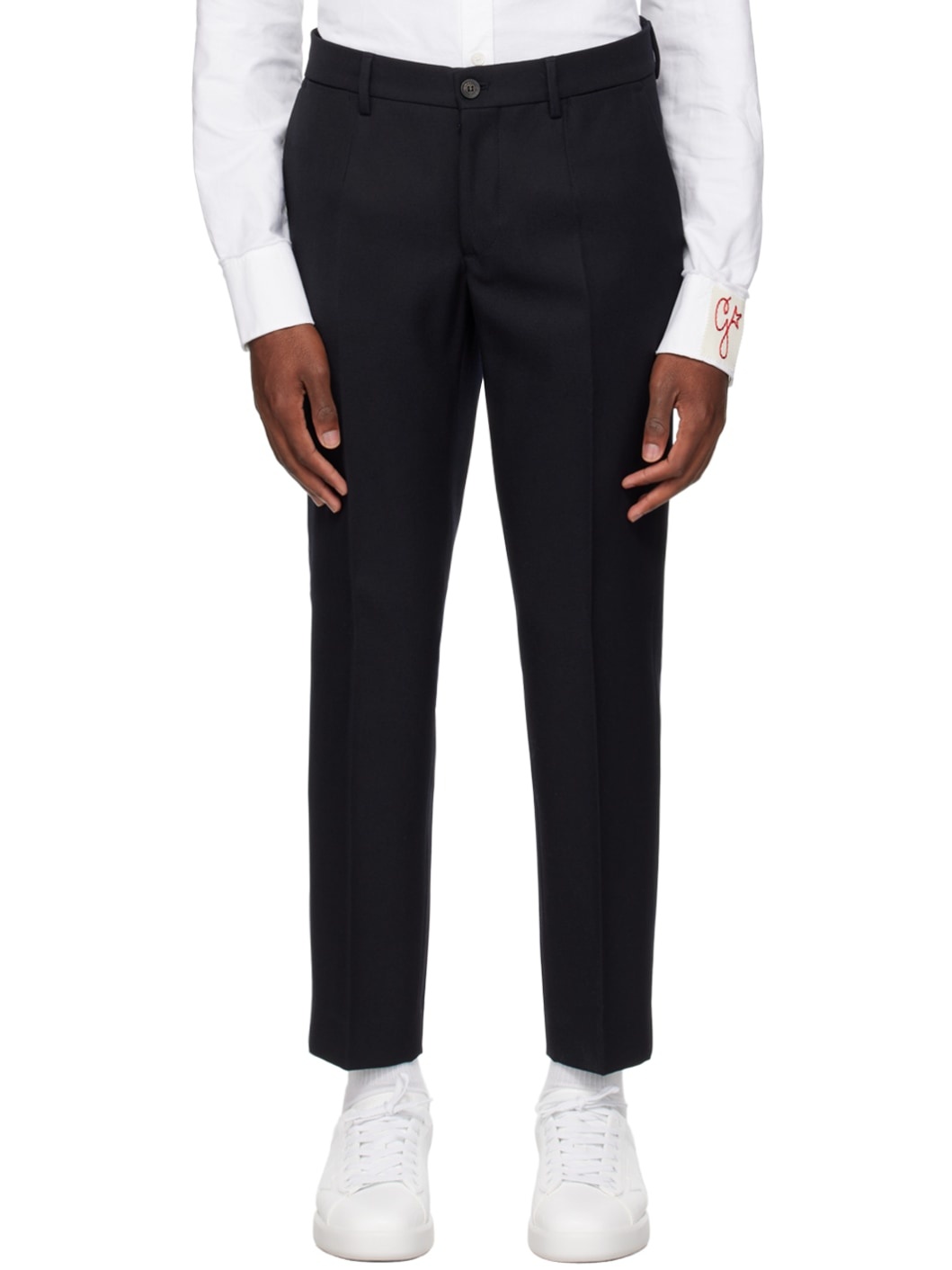 Polyester- and wool-blend twill trousers. · Belt loops · Four-pocket styling · Zip-fly · Central creases at front · Logo hardware at back waistband · Logo patch at back pocket · Partial satin lining Part of the Golden collection. Supplier color: Dark blue Body: 66% polyester, 34% wool. Lining 1: 100% viscose. Lining 2: 65% polyester, 35% cotton. Made in Italy 232264M191011