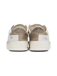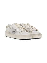 Handcrafted low-top nappa leather and mesh sneakers in off-white. · Smudging and distressing throughout · Lace-up closure · Logo printed at padded tongue · Padded collar · Concealed signature star applique at outer side · Logo stamp · Logo printed at heel tab · Grained leather and terrycloth lining · Logo-embossed textured rubber midsole · Treaded rubber sole Supplier color: Grey/Ecru/Brown Upper: leather, textile. Sole: rubber. Made in Italy 242264M237039
