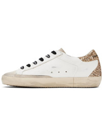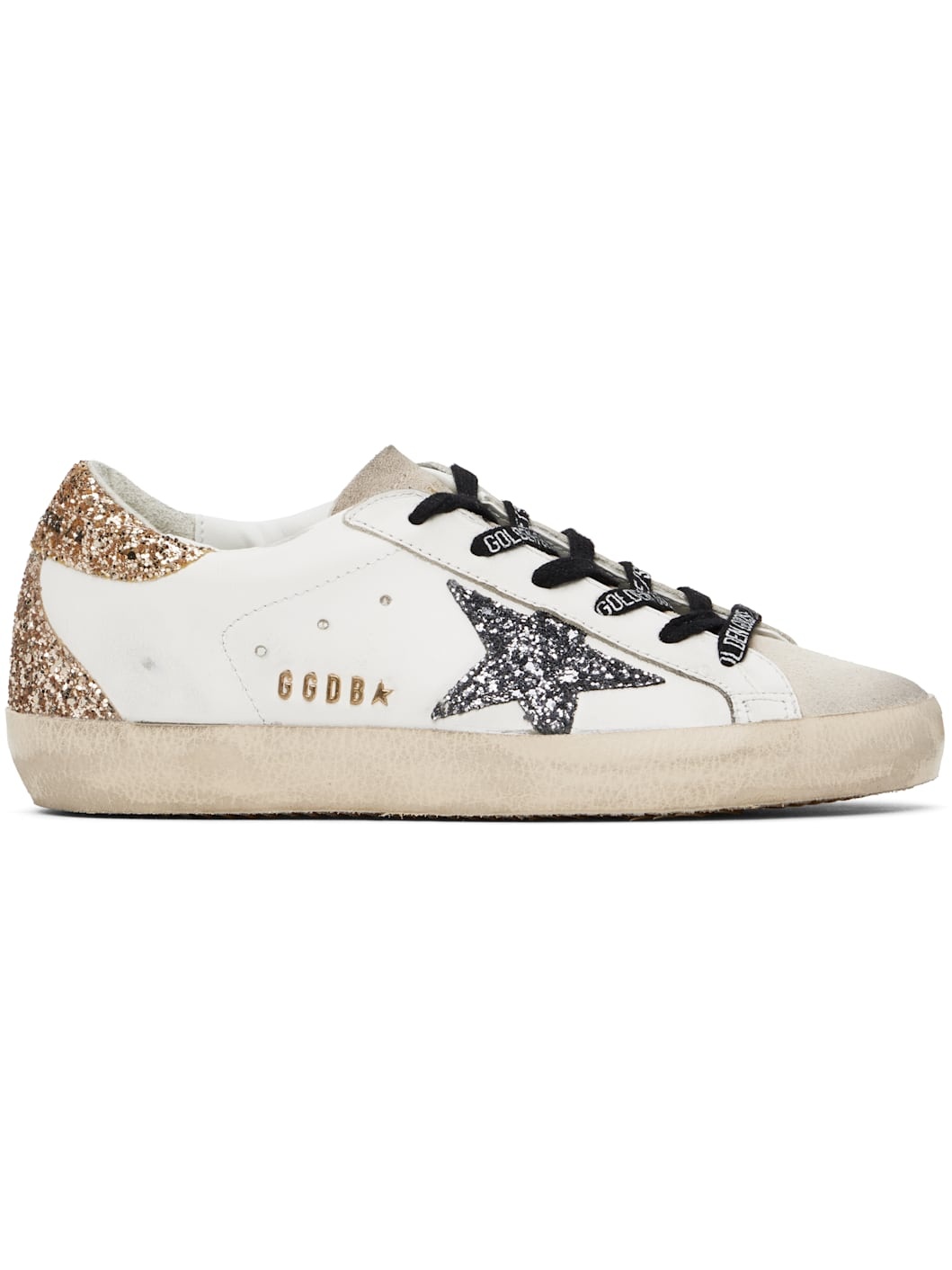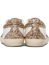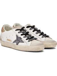Super-Star distressed suede-trimmed glittered leather sneakers White