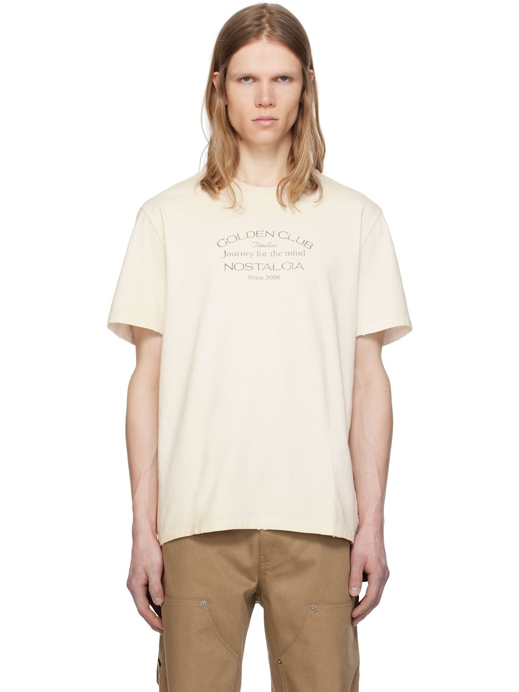 Cotton jersey T-shirt. Distressing and smudging throughout. · Rib-knit crewneck · Logo and text printed at front · Logo hardware at back collar Part of the Journey collection. Supplier color: Heritage white/black 100% cotton. Made in Italy 251264M213011