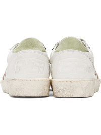 Handcrafted low-top grained leather sneakers in white. · Smudging and perforated detailing throughout · Lace-up closure · Logo patch at padded tongue · Padded collar · Star applique and logo stamp at outer side · Text embossed at heel counter · Terrycloth, suede, and buffed leather lining · Treaded rubber sole Supplier color: White/Moonlight pink Upper: leather. Sole: rubber. Made in Italy 251264F128021
