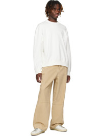 Handcrafted low-top paneled buffed leather and suede sneakers in white and gray. · Smudging throughout · Lace-up closure · Perforated logo at tongue · Padded collar · Perforated detailing at sides · Suede signature star applique at outer side · Gold-tone logo stamp at side · Logo embossed at heel tab · Terrycloth, suede, and buffed leather lining · Treaded rubber sole Supplier color: White/Ice/Light Brown Upper: leather. Sole: rubber. Made in Italy 251264M237048