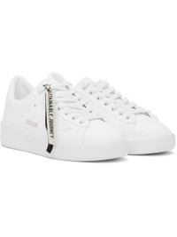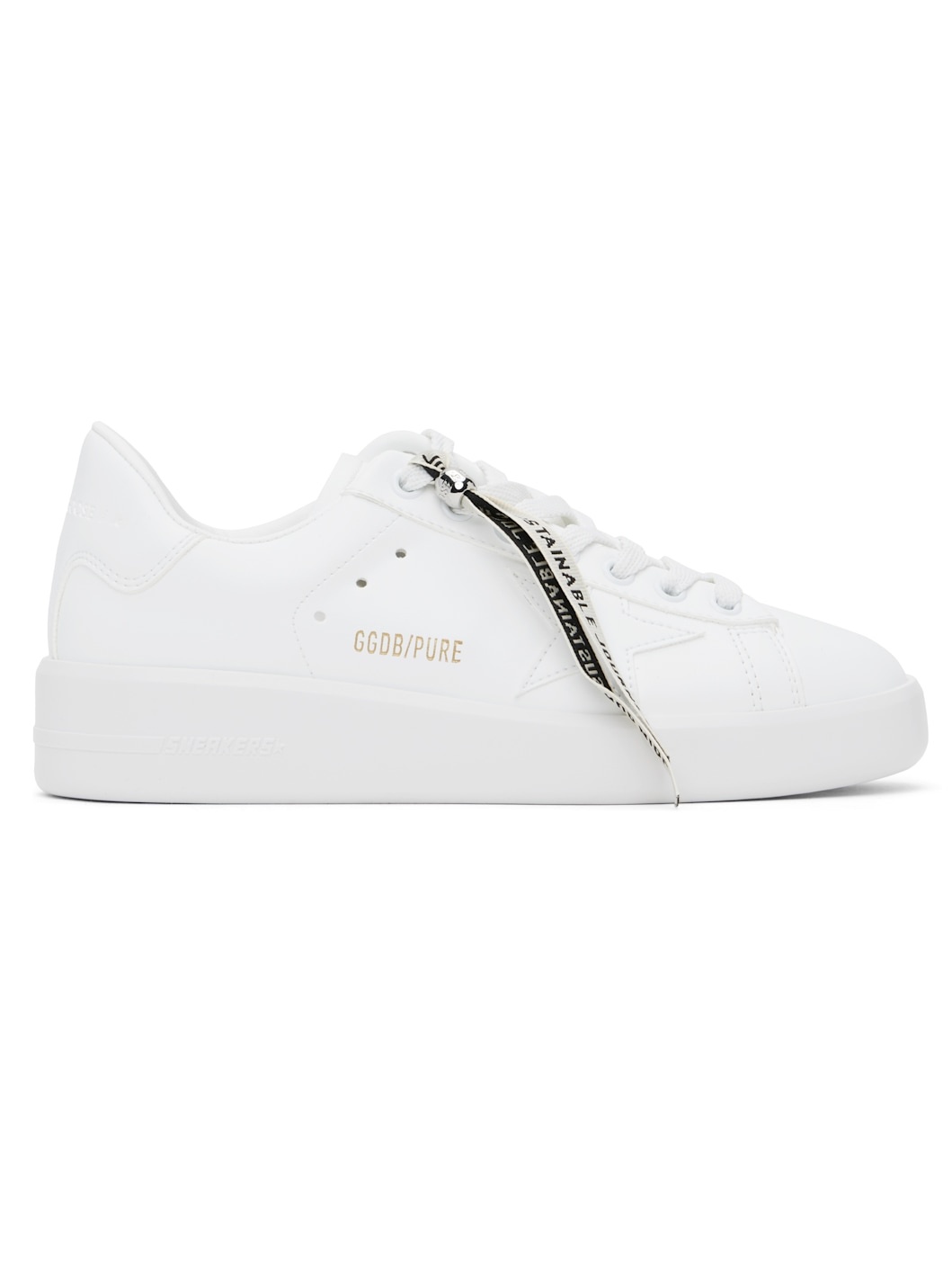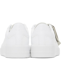 Handcrafted low-top bio-based buffed faux-leather sneakers in white. · Lace-up closure · Logo embossed at tongue and heel tab · Padded collar · Perforated detailing at sides · Signature star applique at outer side · Gold-tone logo stamp at outer side · Grained leather lining · Logo embossed at treaded rubber sole Supplier color: Optic white Body: synthetic. Sole: rubber. Made in Italy 251264M237030
