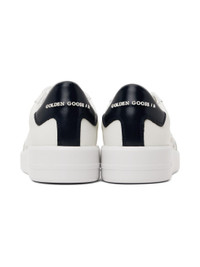 Handcrafted low-top buffed calfskin sneakers in white. · Lace-up closure · Rubberized logo patch at tongue · Padded collar · Perforated detailing at sides · Star applique at outer side · Logo stamp at outer side · Logo bonded at heel tab · Buffed leather and terrycloth lining · Treaded rubber sole Supplier color: White/Blue Upper: calfskin. Sole: rubber. Made in Italy 242264M237060